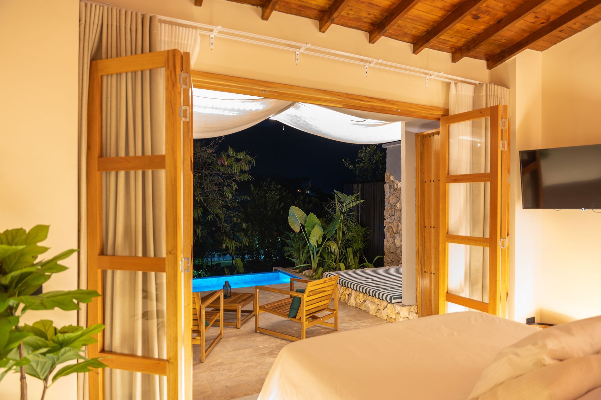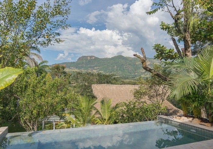 Su terraza privada con piscina te invita a contemplar la naturaleza, y las hermosas montañas del suroeste Antioqueño, creando una experiencia de descanso inolvidable.