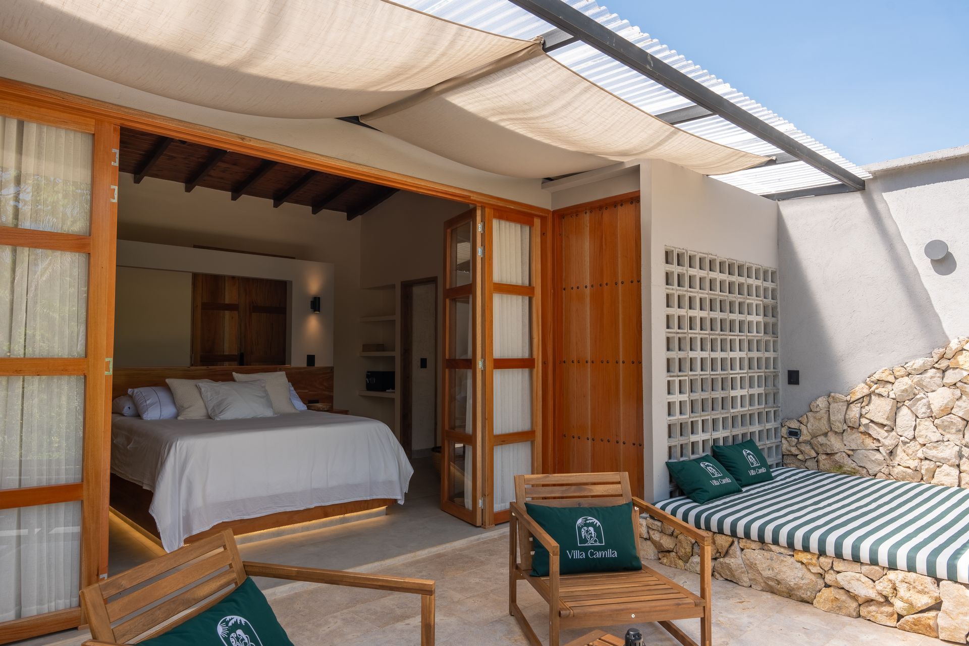La suite Yaakun está inspirada en los viajes de Camila por México, reflejando la esencia del Caribe y su espíritu aventurero. Su diseño combina elegancia y calidez, con detalles que evocan la cultura maya y la serenidad del mar. Dispone de un amplio jacuzzi para el máximo relax, una exclusiva Maya Catamarán, y una terraza privada con vistas espectaculares. Cada rincón ha sido diseñado para ofrecer una experiencia única, con materiales naturales y decoración que transporta a las playas de Cancún y la Riviera Maya. Ideal para quienes buscan lujo, confort y conexión con la naturaleza